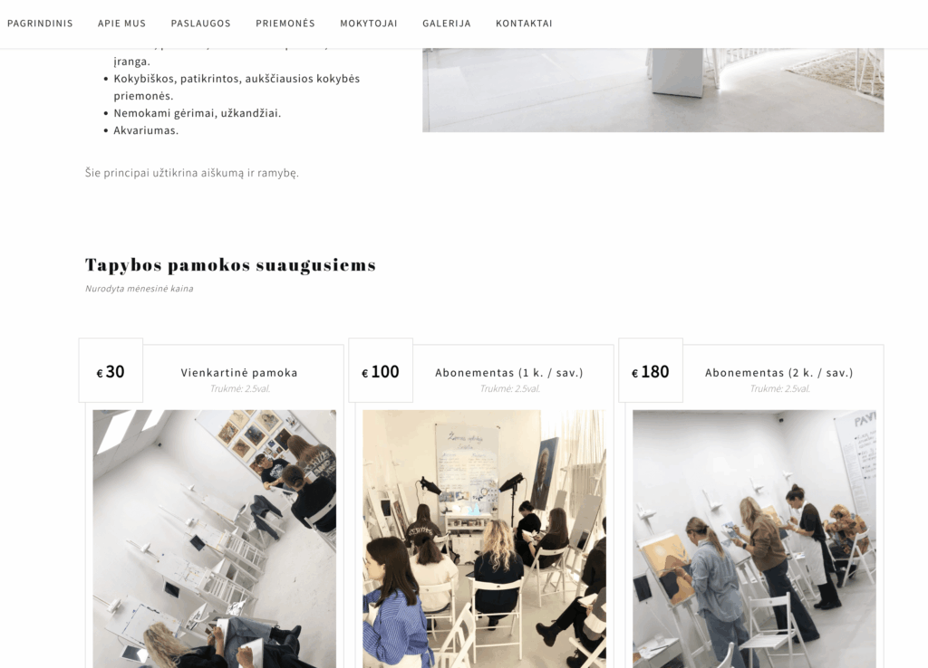 - Aiškus paslaugų pristatymas ir kainodara